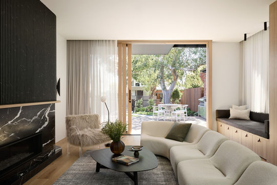 What sets Havenwood apart is its radical rethinking of the conventional suburban layout. Where most homes turn their back on the street, retreating behind fences and hedges, this house opens boldly toward the public realm. The principal living spaces face a landscaped front garden, framing views of a mature street tree and fostering a quiet dialogue with the neighbourhood beyond. It is a gesture both generous and intelligent, expanding the sense of space without expanding the footprint.