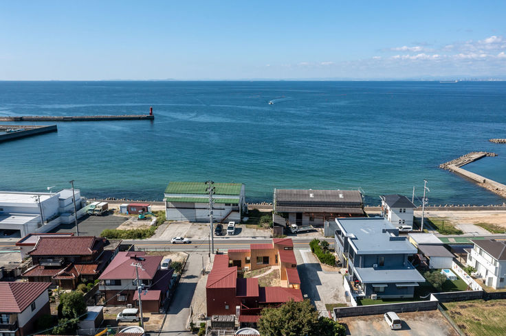 Innovative sustainability is evident in the exterior choices. Responding to strong coastal winds and salt damage, the design employs seamless roof-wall construction using salt-resistant galvanized steel panels. Its reddish-brown facade harmonizes with the traditional Awaji streetscape, while visible cedar interior elements respond to the nearby park greenery and distant mountain scenery.