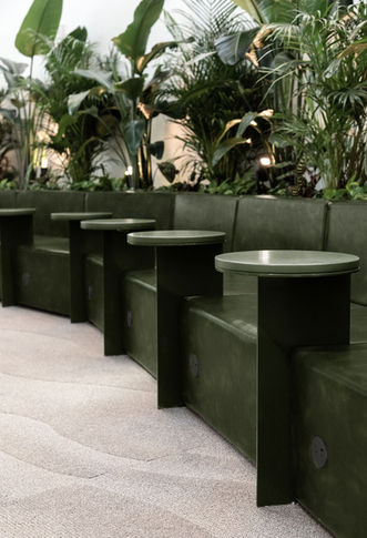 项目最精彩的设计在于其基础设施创新:面对无法在混凝土地板钻孔的限制,MRDK设计出巧妙的解决方案——采用抬高的种植箱巧妙隐藏电线管路,同时为每个座位提供充电功能。这些雕塑般的元素身兼三职:容纳茂盛绿植、界定流线路径、组织空间内的私密座位区域。
