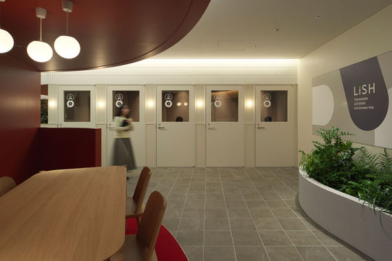 设计特色:东京建筑事务所On Design完成了位于该市港区的LiSH Studio1的室内设计。这座孵化设施通过精心编排的垂壁、腰墙和天花板处理手法,在促进使用者持续移动和停留的同时,精心营造人们之间的相遇机会。