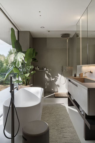 材料及色调极其克制,以白色为主调,仅以深棕色橡木贴面结构作为点缀,创造出建筑师所描述的"宁静与沉思之所"。建筑师对细节的关注体现在每个空间转换处,展现了对整体设计哲学的坚持。